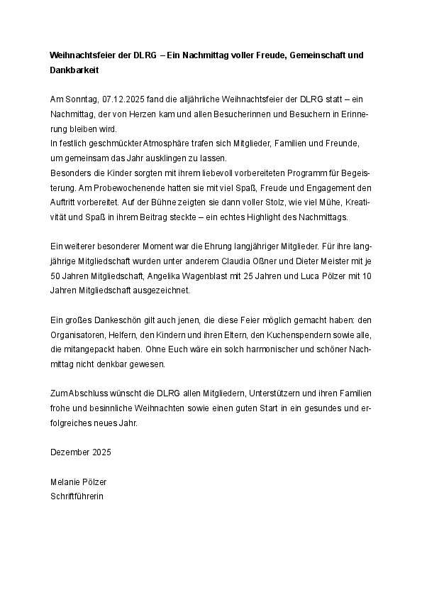 Schade, denn wir als kleine Ortsgruppe haben den Leitspruch der DLRG wieder vorbildlich erfüllt. Wir haben Nichtschwimmer zu Schwimmern und Schwimmer zu Rettungsschwimmer ausgebildet.